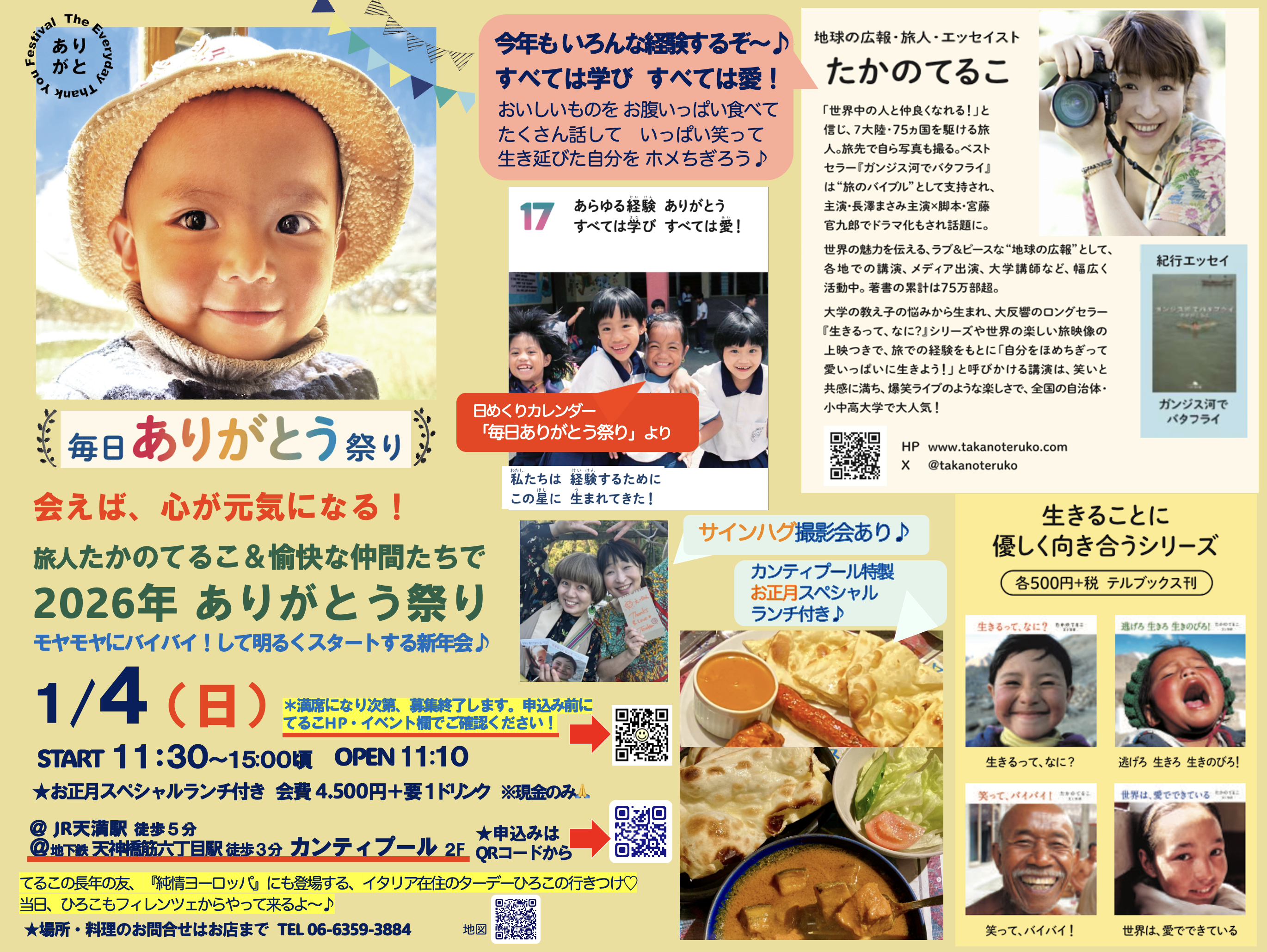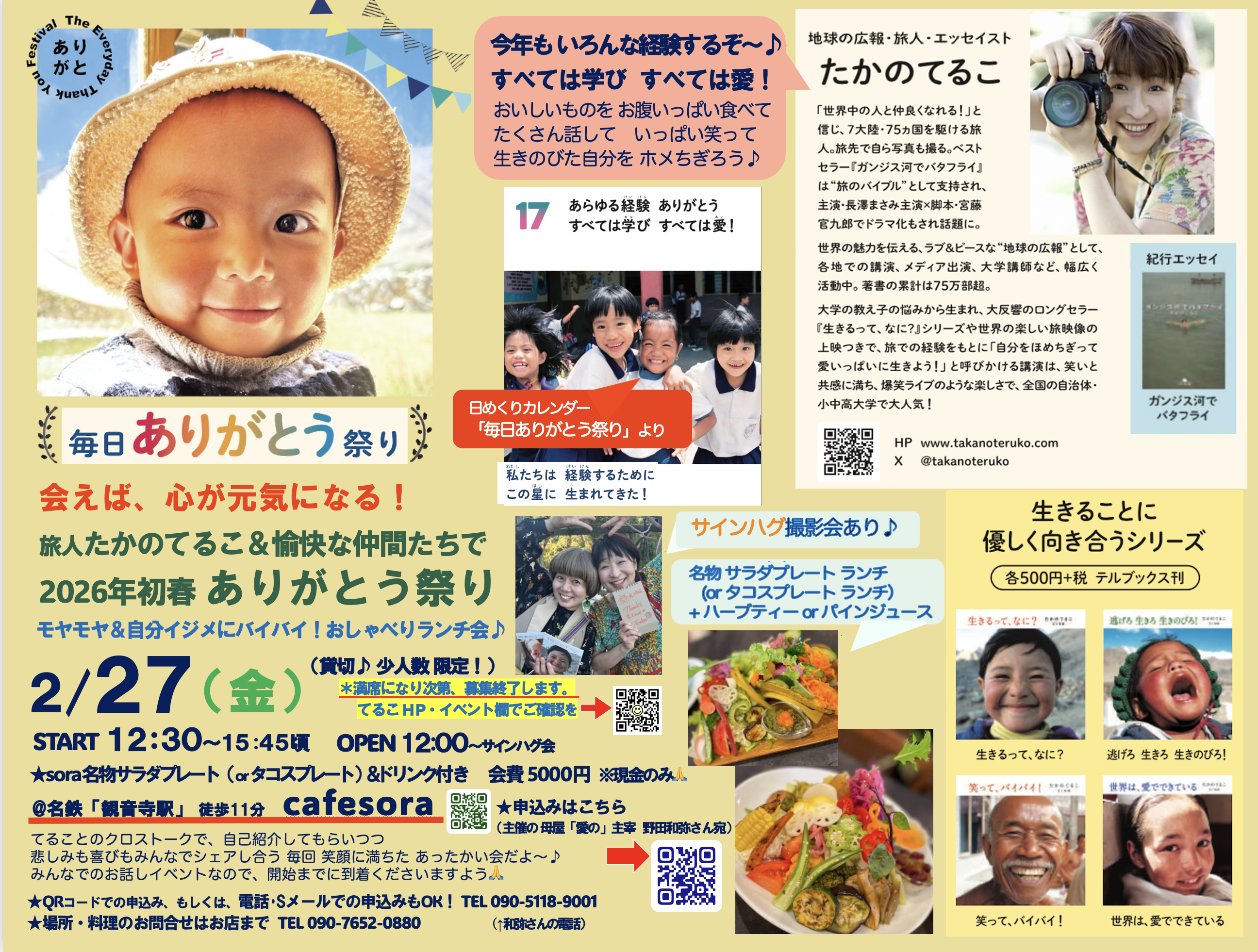 たかのてるこ&愉快な仲間たちで 2026年初春 ありがとう祭り モヤモヤ&自分イジメにバイバイ!おしゃべりランチ会♪